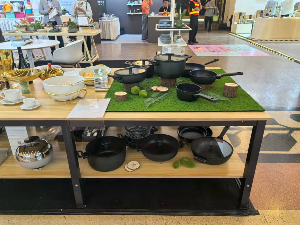 意大利百年餐具品牌 Sambonet 此次则聚焦 “专业级餐厨解决方案”,新品 Titan Pro Green系列凭借实用性、功能性,及卓越设计脱颖而出。该系列采用双层感应技术,加热快,热量不易逸散。陶瓷涂层不含全氟和多氟烷基物质( PFAS)、双酚 A( BPA)、镍及其他重金属,打造安全无毒的不粘锅表面,且这种水性涂层比其他涂层耐用度增强4 倍,二氧化碳排放量比其他涂层减少 50%,秉承Sambonet一贯对社会责任和环境保护的理念。