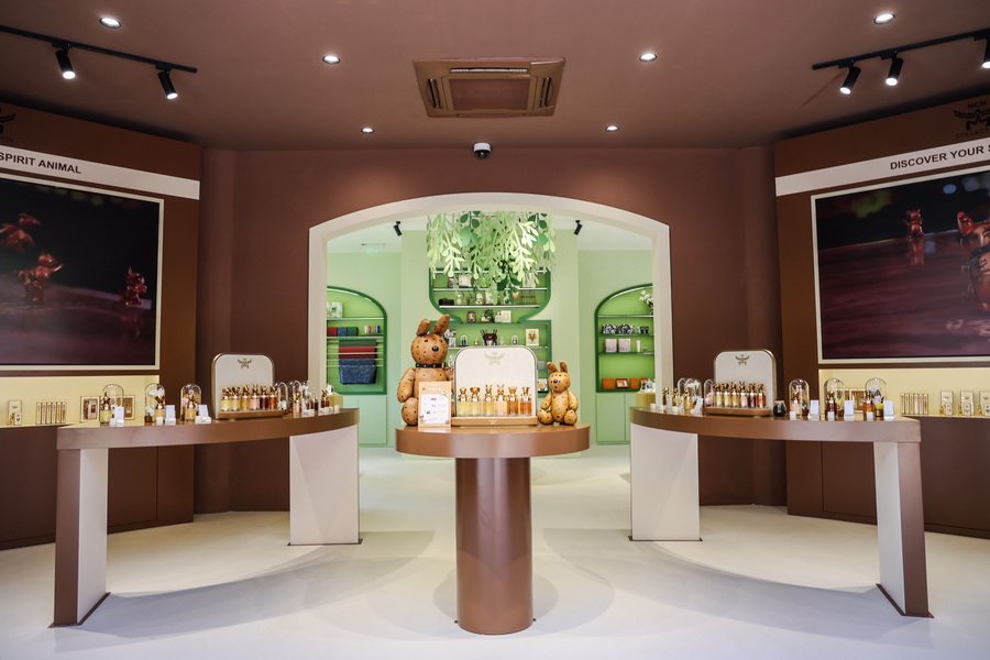 前区的MCM动物园香水专区以“寻香识动物人格”为互动主线,将全系列香水与萌宠艺术装置、定制打卡镜面有机结合,构建出一个充满趣味与辨识度的“香气人格测试场”。观众不仅可试香,更可通过影像互动与气味选择,完成一场关于自我个性的嗅觉识别与表达。