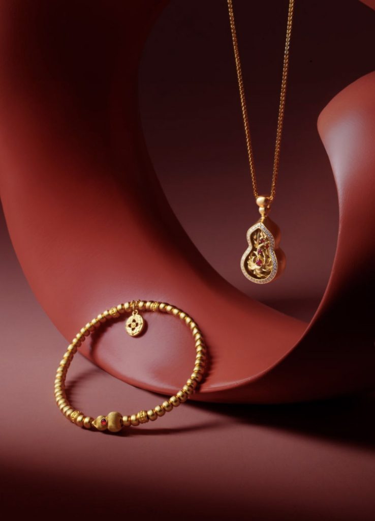 老庙古韵金作新品将现代设计语言与传统文化元素相结合,彰显东方美学精髓。莲花,象征纯净与新生,层层绽放的姿态寓意福泽绵延、生生不息;葫芦谐音“福禄”,造型饱满圆融,历来被视作聚气纳福、吉祥圆满的象征。两者结合呈现的“莲生福禄”好运符号,既是对经典意象的焕新演绎,也传递着更为深厚立体的文化内涵与品牌祝福。