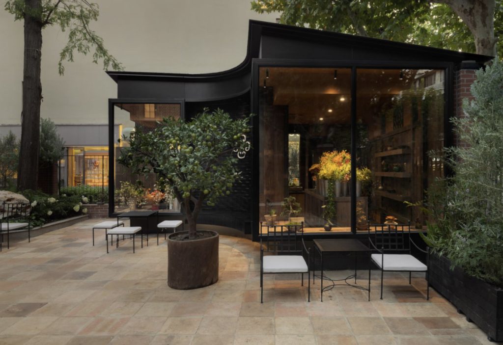 同时,新店临街处为四叶草花店,在棟梁独特审美的凝练下,将中式插花的意境与西式花艺的现代美学语言相融合。花店陈设松枝等具有东方风骨的植栽,其花器亦经棟梁团队悉心甄选,在古典底蕴与当代设计之间寻得平衡。这不仅将「游园」的意趣漫溢至街角,更让每一位过路者都能信手拈来,将一份融贯东西的雅致携入日常,让棟梁所构建的生活方式,于都市生活的脉络中悄然生长。