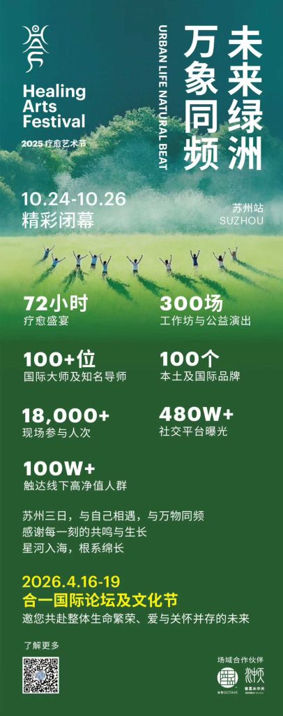 第十一届疗愈艺术节虽已落幕,音昱水中天对健康与可持续生活的探索仍在继续。2026年4月16-19日,阳澄湖畔隐世秘境音昱水中天,2026合一国际论坛及文化节即将启幕。