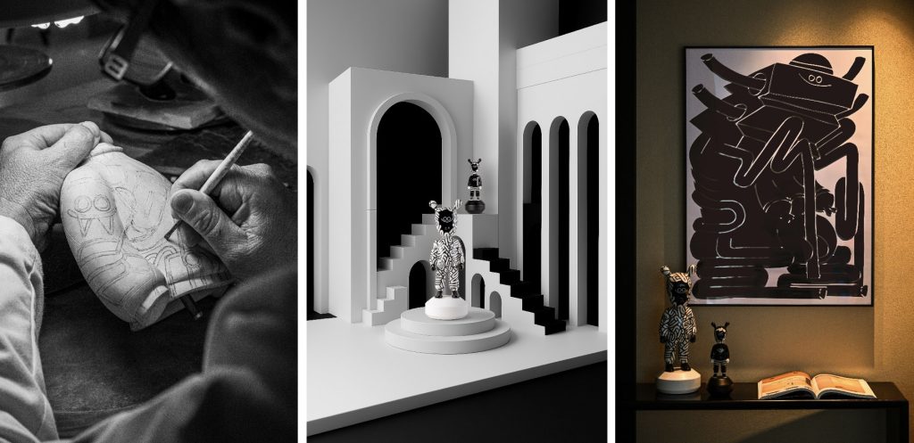 在本次合作中,Juan Díaz-Faes对最初由Jaime Hayon创作,现已成为LLADRÓ雅致经典设计的“天外来客”瓷艺雕塑进行全新演绎,推出三款独特杰作,包括一款限量30件的黄黑配色作品,以及两款采用繁复黑白图案的设计,将瓷艺表面化为手绘艺术的画布。在谈及Jaime Hayon的原作设计如何为其层次鲜明的创作方式带来启发时,他指出:“图案能适应任何表面与形态”。