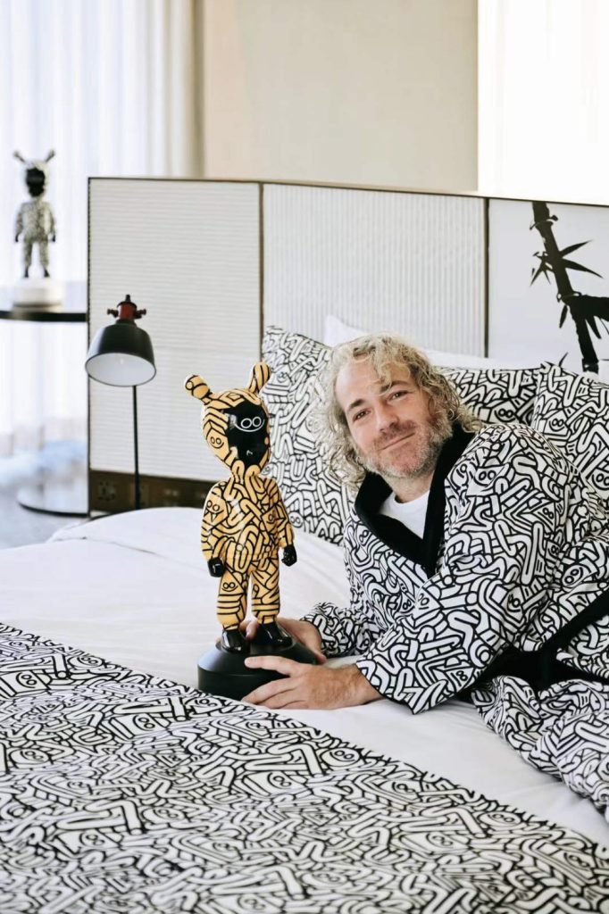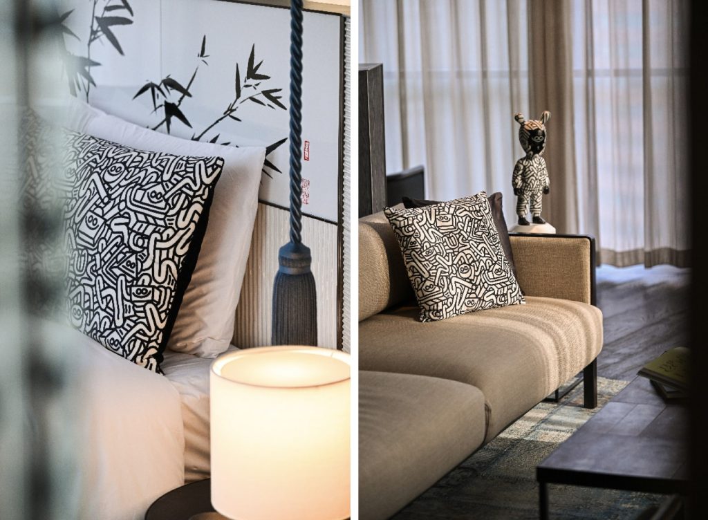 这一艺术构想亦延伸至上海居舍,Juan Díaz-Faes为其精心设计的Studio 90艺术套房,可谓一座宜居的艺术典藏空间。通过壁画、艺术贴纸、定制枕头、沙发靠垫、床尾巾乃至睡袍等细节,这一宜人空间将艺术美学与待客之道融入颇具个人特色的环境中,为旅客打造沉浸式的住宿体验。
