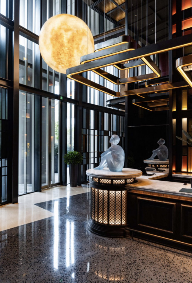 室内设计由新加坡银狐设计工作室(SilverFox Studios)操刀,灵感源自中国2010年上海世界博览会展馆,打造出“馆中馆”的空间叙事。简洁的钢结构致敬场地的工业记忆,在光影与材质的层叠中呈现桐森式的对比美学——钢与木、混凝土与天鹅绒、复古与当代相映成趣,营造出兼具沉稳与精致、先锋与经典的感官体验。