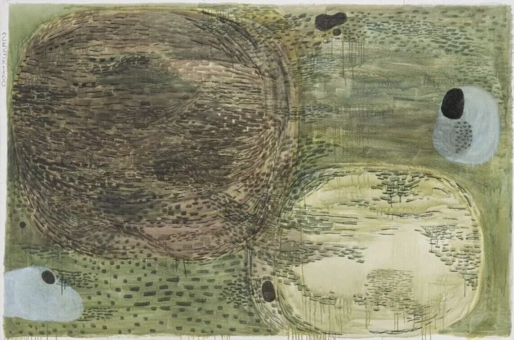 周长江《互补系列NO.120》:此作在第七届全国美展获银奖,是中国首幅获奖的非具象油画,以“阴阳互补”理念开创了当代艺术新篇章。