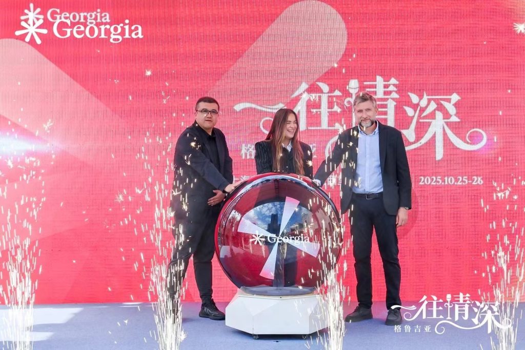 10月25日至26日,上海苏河湾万象天地西里·慎余里广场化身为充满高加索风情的“格鲁吉亚秘境”。在无数期待的目光中,格鲁吉亚国家旅游局总部代表Teona Kalandadze、代表Lasha Chkhaidze、龙途国际副总裁李潇(Shawn Li)等共同按下启动装置,伴随着流淌而出的激昂音乐,这场名为“一往情深·格鲁吉亚”的沪上文化盛宴正式启幕。Teona Kalandadze女士在启动仪式上表示:“格鲁吉亚深信‘客人是上帝的礼物’,这个将古老传统与现代活力融合的国度,诚邀中国游客开启探索之旅。”