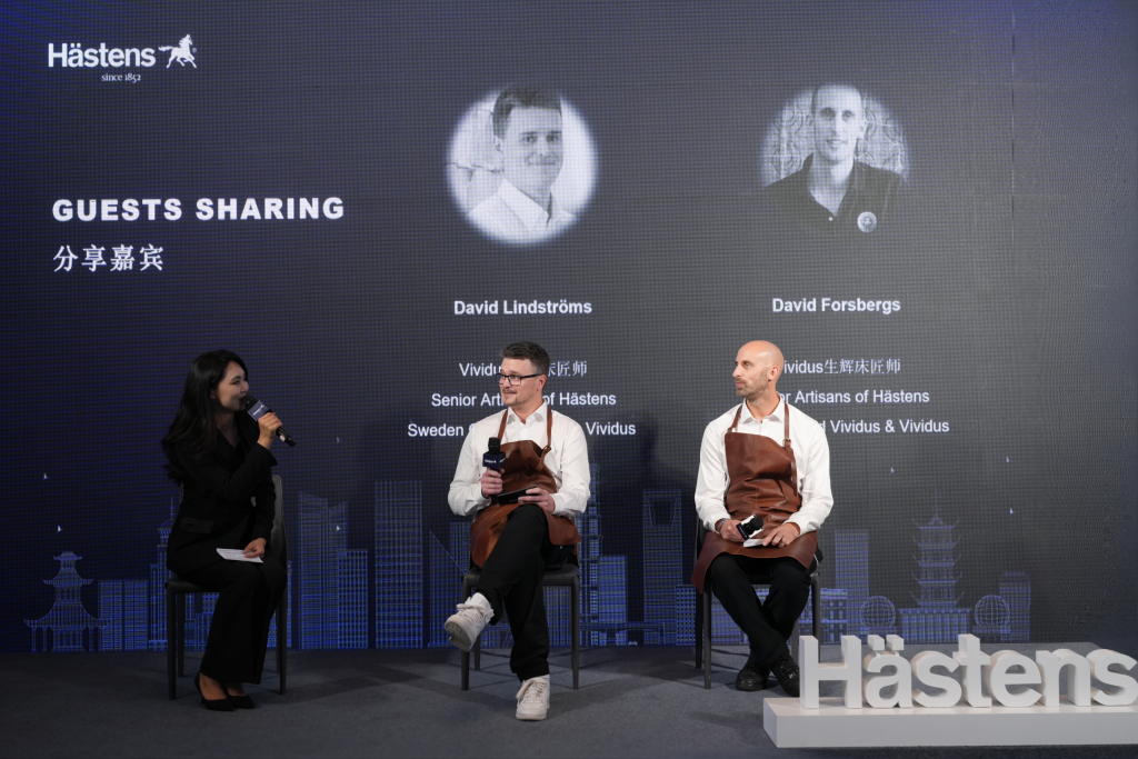 在本次开业盛典的手工制床展示环节,Vividus生辉床匠师David Lindströms与David Forsbergs用精湛的技艺为现场观众呈现了一场沉浸式的手作观摩体验,诠释了独属于海丝腾床具的生命力。此外,匠师们还分享了自己与海丝腾的故事,包括“在每一步之前都停下来思考一秒”的制床秘诀,以及为中国客人定制刻有“LABUBU”潮玩形象铭牌的趣事。这些点滴不仅生动传递出海丝腾所倡导的匠心精神,更映照出其与全球用户之间深厚的情感连接。