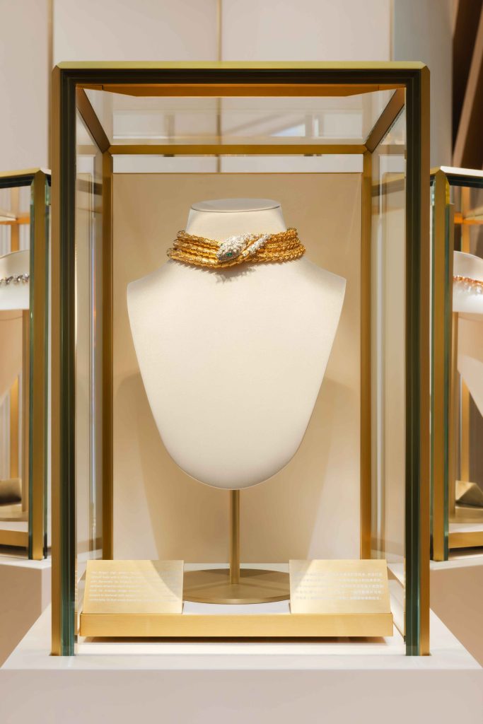 展厅内悉心呈现的宝格丽高级珠宝佳作,还将继续引领观众直观领略宝格丽匠艺精髓。COLOR TREASURES高级珠宝系列以瑰美宝石诠释出“彩色宝石大师”之美誉的深厚积淀,再度印证了品牌在色彩领域的精妙运用,每款作品皆是艺术、创新与情感融合的华丽交响。SERPENTI高级珠宝系列则以无限循环的设计韵律,诠释出蜕变与新生的丰富内涵,让品牌标志性元素的恒久魅力跃然眼前。