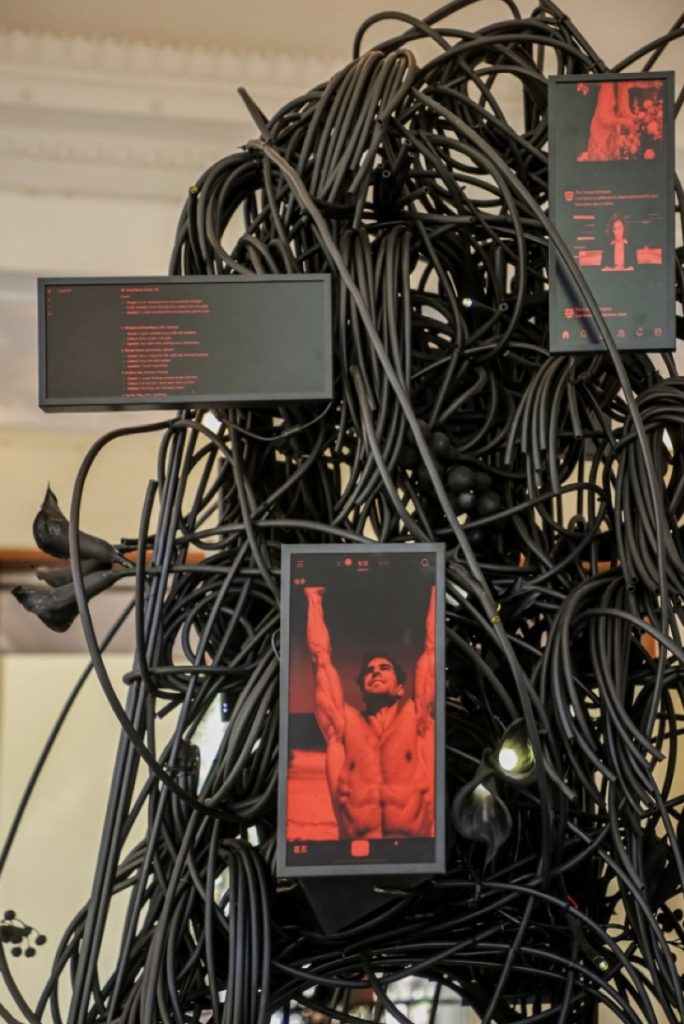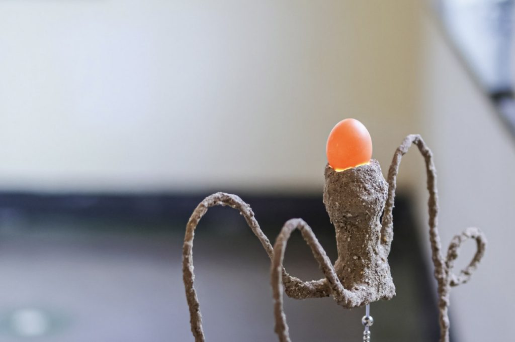 艺术家胡佳艺的作品《冰刀》、《总是来得太迟》以日常为起点,赋予其寓言般的张力,展示一种超越资本逻辑、恢复感知的全新节奏。《虚空的呼唤》系列作品则在时空与物质的循环中,展开对自由意义的深邃追问。艺术家黎佳仪的作品《中场休息》和《蛋》,脱离了人类中心视角,构建出重塑感知的独特叙事,引人驻足凝思。装置艺术家徐戈的《接口》以艺术语言解剖技术理性,真实映照出人被数据异化的生存现实。他的系列作品《永无岛——一块蛋糕计划》以荒诞神话展开,耐心而深入地探讨人类内心世界的虚空和追寻。