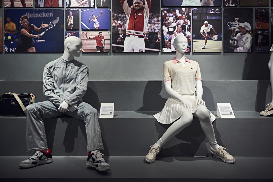 步入品牌体验中心内的FILA博物馆,馆内的档案库展示了众多对于品牌历史具有深远意义的珍贵藏品,涵盖了鞋履、服饰、设计手稿等大类,精心设计的空间布局旨在打造沉浸式互动体验。展览脉络追溯了FILA自1911年作为针织品制造商起步,到20世纪70年代以网球为核心运动品类开启了迈向运动产品线的关键性转折,并记录了诸如与FILA品牌大使、瑞典传奇网球运动员比约·博格(Bjӧrn Borg)合作的标志性时刻。