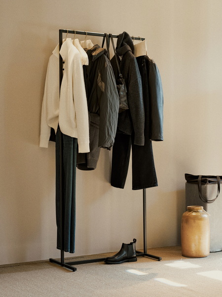 知名室内设计师谢柯,擅长以富有诗意的极简主义语言,将东方哲思与现代主义美学创新融合。作为本次体验店的空间顾问,谢柯以其独特的设计语言——克制、内敛且注重光影与材质的对话,深度诠释了“万物有序”的核心理念。他凭借颇具韵律感的布局与沉静色调,将空间转化作一首静谧诗篇,衣物与家具、器物交错陈列,在秩序感中彼此呼应,营造出引人沉思的沉浸式氛围。