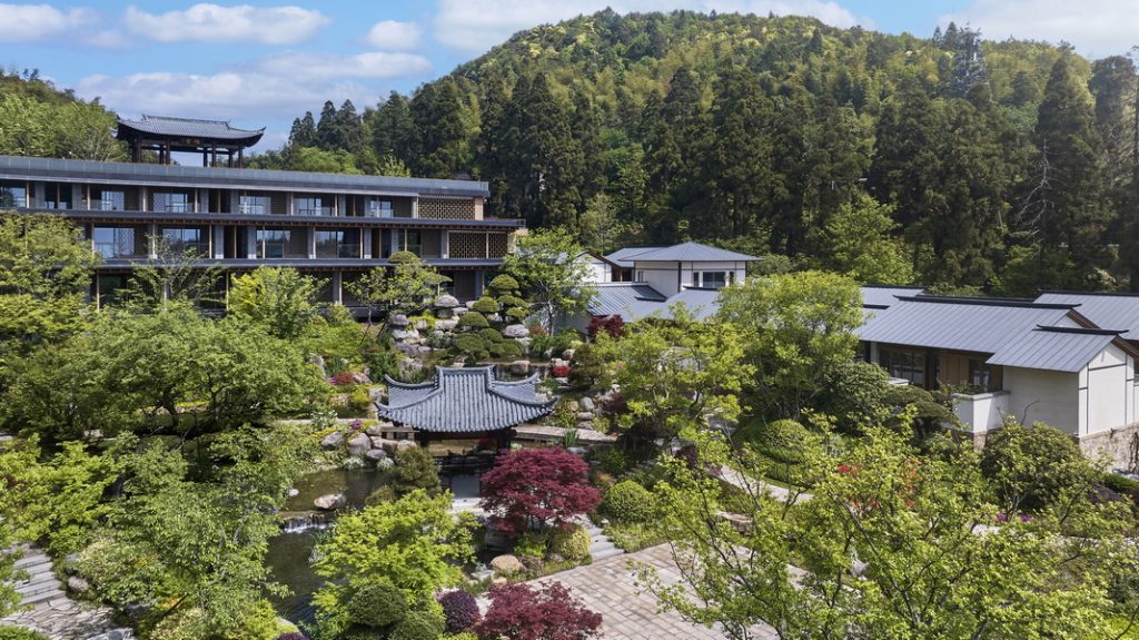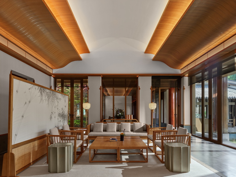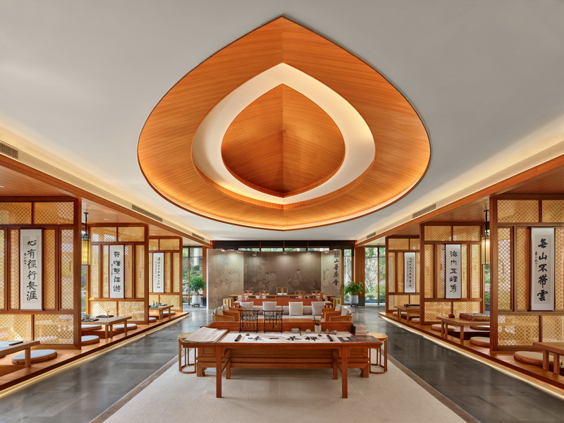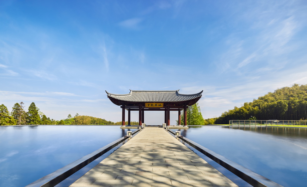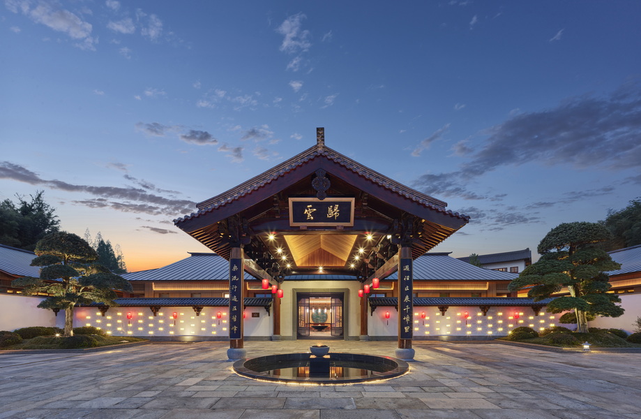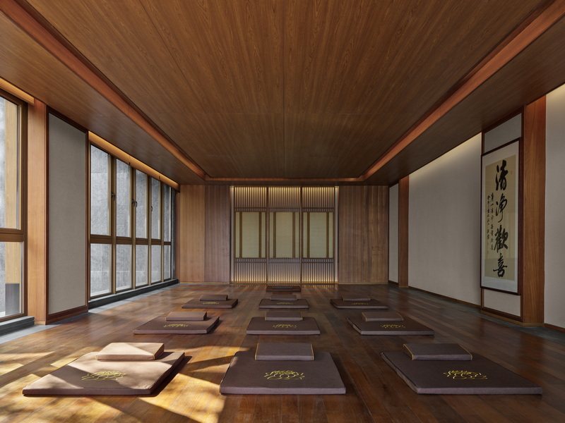 全景轩窗尽揽四时风物,登临隐空亭可远眺天目群峰与青山湖光。在这里,隐空亭中的冥想静修续写禅门宗风,喜分茶室复原的宋代点茶仪式重现禅茶古韵,禅云居四季流转的观景体验融汇”观山归云、听钟传幽”的意境。