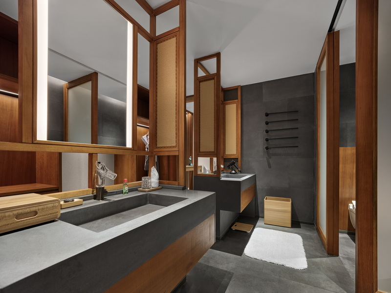 径山禅茶酒店依山就势构筑了”禅云居”、”禅香阁”、”禅衫院”三境,客房错落隐现于云海竹涛之间。68间禅意客房隐于松竹深处,各具特色。