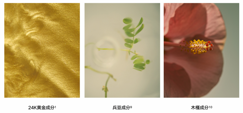 饱满细润力:细肤沁润精粹[viii](兵豆[ix] × 木槿[x])——自然澎湃滋润力,兵豆籽提取物帮助改善粗糙肤质,收敛老孔,细腻平滑肌肤;木槿10为肌肤提供天然保湿能量。为肌肤补充满满水分与营养,令肌肤呈现饱满、细腻、水光的年轻状态。
