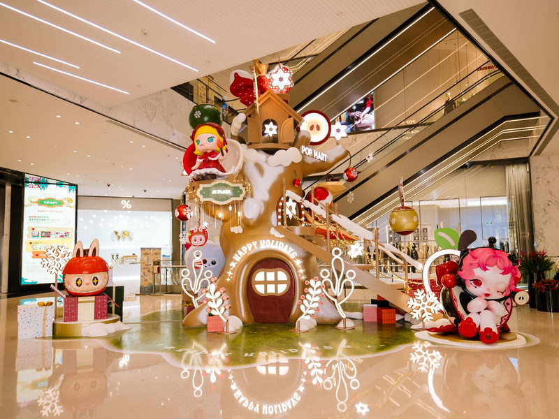 本次活动联合品牌 POP MART推出「你最珍贵」系列主题展览华东首展,将节日氛围,IP艺术装置与冬季故事线相融合,以“星光、梦幻、你最珍贵、泡泡礼物季”为叙事元素,引导顾客在商业空间中体验潮流文化艺术节日气息。活动现场不仅能拍照打卡,购买节日礼物、还能参与互动任务、收集节日心意,以轻松、温和的方式为城市冬季注入美好能量。