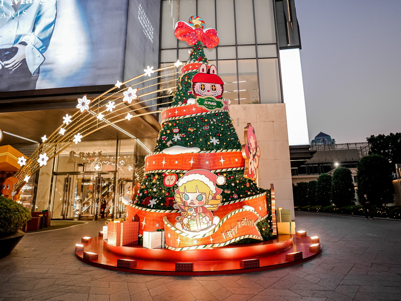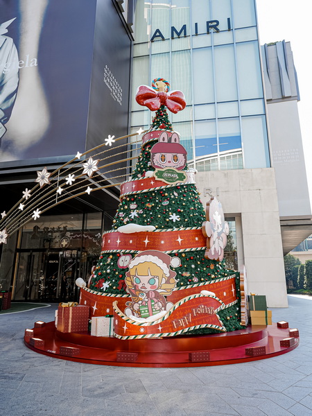 • 站点①绮愿星光树(西侧外广场:作为入口装置,“绮愿星光树”像是一封送给每位来访者的节日邀请函。星光树以礼物缎带、泡泡玛特可爱小伙伴们层层环绕,满树皆是节日心意与小小惊喜。从这里踏入 JC 冬日星光绮旅,开启一段充满欢乐与美好的冬日旅途。