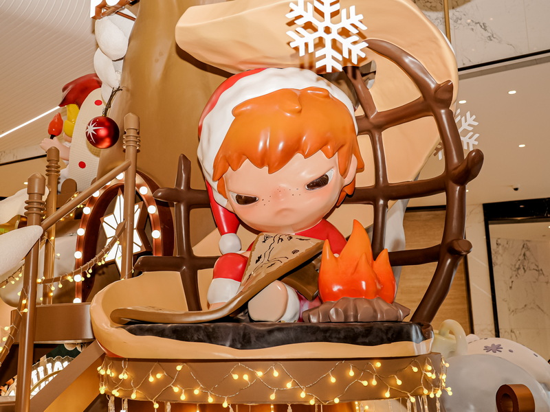 • 站点③平安果树屋(L1 中庭):“平安果树屋”像是从童话里出现的小小心愿木屋。苹果与雪意点亮屋檐,暖光从窗框缓缓溢出,整个场景都透着柔软梦幻的节日氛围。在树屋下,泡泡玛特的小伙伴们正替你许下“Apple of My Eye” ——你最珍贵 的平安星愿把这份年末的温柔送给你最珍贵的人。