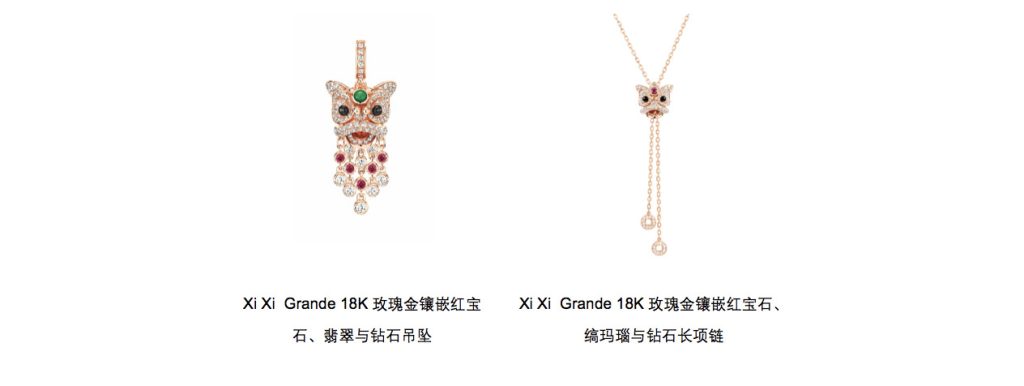 灵感源自东方文化中狮子象征幸福与财富守护,Xi Xi 项链以精致工艺重新演绎这一强大意象。Xi Xi 吊坠以 18K玫瑰金打造,镶嵌红宝石、翡翠、玛瑙与钻石,展现喜庆华丽与守护寓意。搭配 Xi Xi Grande长项链,主狮头可沿切割钻石链自由滑动,佩戴更添动感与光彩。两款项链叠戴组合,打造节日造型的奢华层次,亦是传递心意的理想之选。