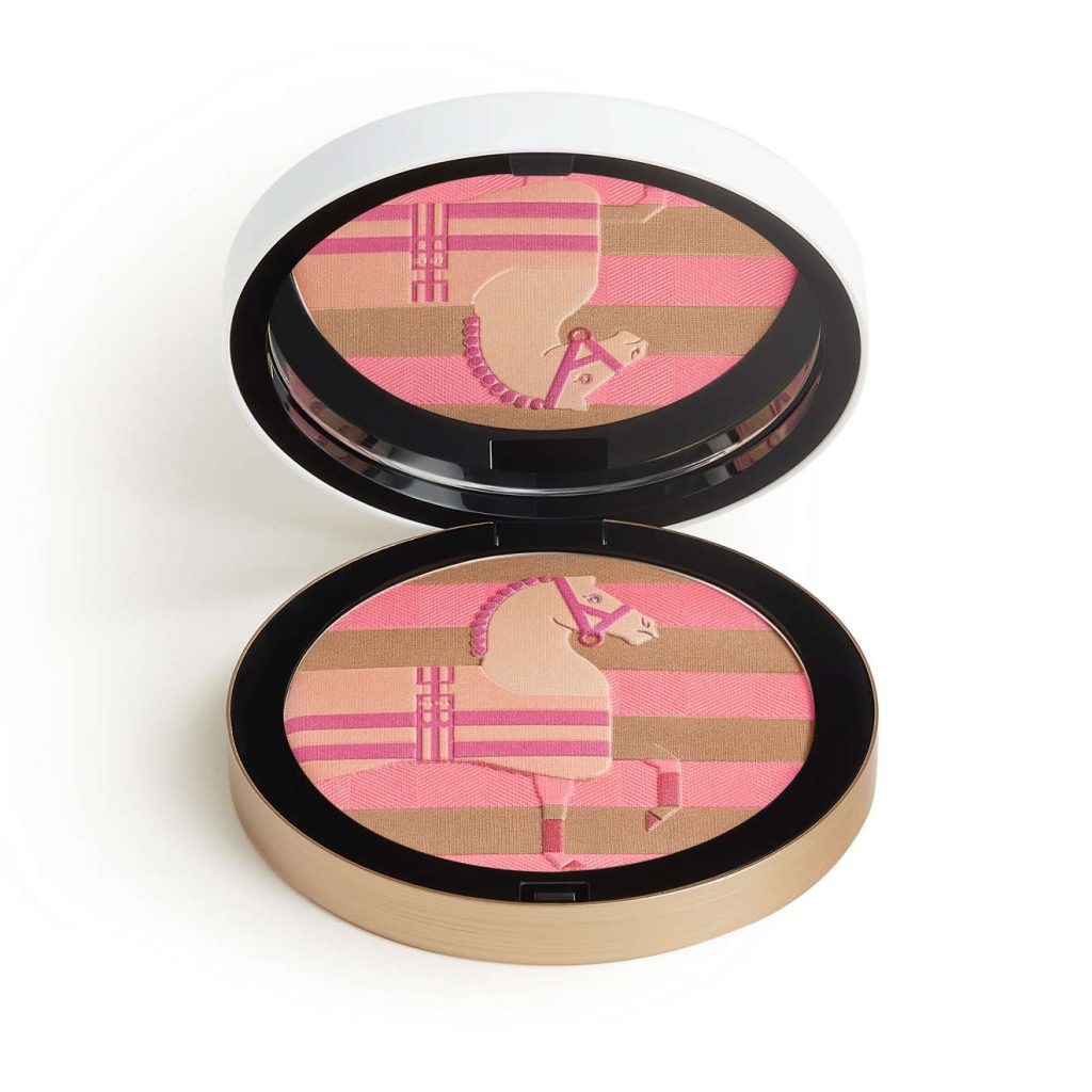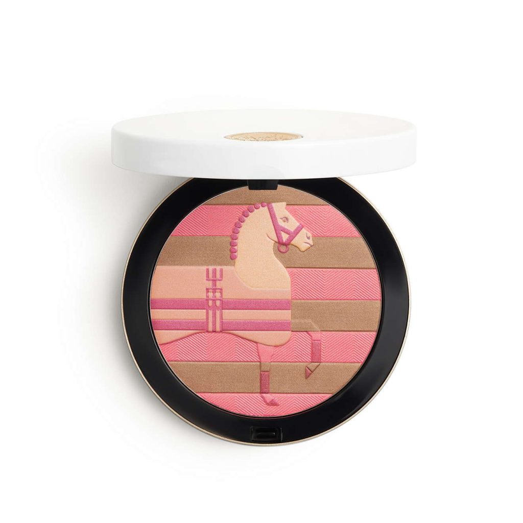 “Poudre Rocabar 爱马仕丝柔粉妆焕颜蜜粉饼(骏马限量版)的粉体细如轻纱,能为肌肤带来健康光感,焕发出色彩缤纷的粉嫩光泽。”Gregoris Pyrpylis 补充道, ” 只需跟随心意,以率性 自如的上妆手法轻扫双颊,轻触额头,拂过鼻梁,肤色便瞬间明亮动人。 ”
