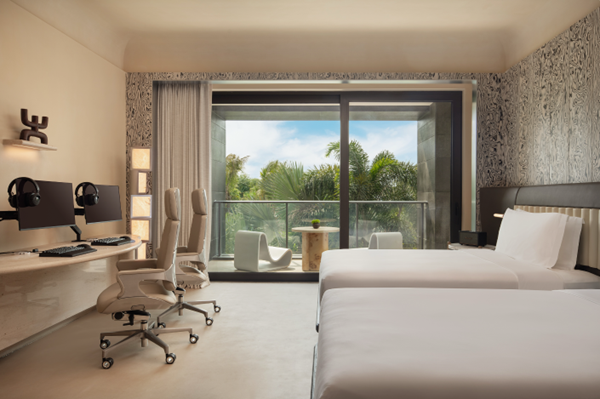 配备搭载i9处理器+4090显卡电竞专业设备的电竞房,是游戏玩家的度假理想之选。每间电竞房均配备双人电竞设备,并配备马歇尔音响、奈斯派索Vertuo Plus VP胶囊咖啡机、戴森吹风机、HAY华夫格浴袍、首日免费迷你吧以及Maison 21G定制香氛洗护用品,结合劳芬浴缸与步入式淋浴间,为专注战局的玩家创造松弛与活力兼备的沉浸体验。
