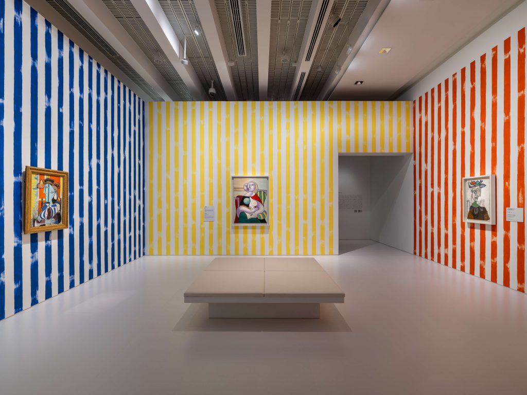 本次展览溯源自巴黎毕加索博物馆于2023年举办的“毕加索庆典:新视角下的收藏”(Picasso Celebration: The Collection in a New Light),彼时正值艺术家逝世五十周年。这一翘首以盼的展览如今登陆上海,馆方共同精选80件作品,在保留展览核心精神的基础上,根据浦东美术馆开放、独特的空间进行重新定制了不一样的展陈设计。保罗·史密斯爵士摒弃了近几十年来盛行的“白盒子”展示模式,以色彩、图案、条纹与物件为线索构建沉浸式展陈结构,使作品与空间产生富有节奏的呼应关系,引领观众“走进毕加索”,成为其艺术宇宙的同行者。