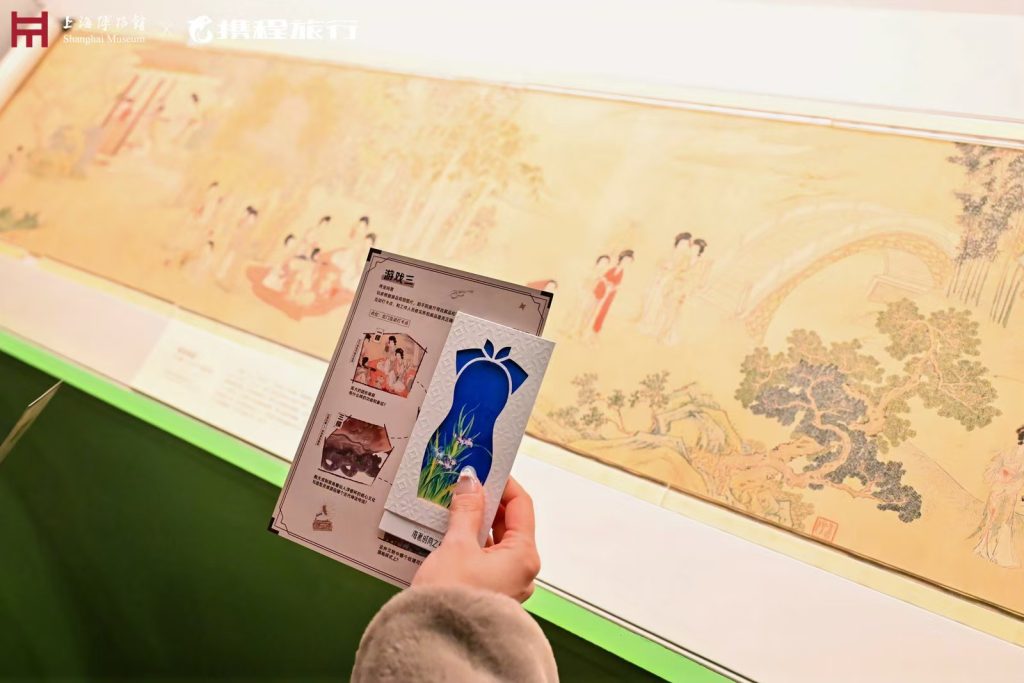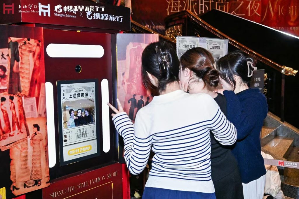 本次时尚之夜设有四个主题橱窗,打造沉浸式时尚体验空间。每个主题区域除了风格鲜明的场景外,还有身着对应服饰的互动NPC,为观众提供丰富的拍照灵感。主题橱窗內另设三大互动游戏环节,包括考验旗袍纹样识别能力的“脑力对决:纹样速答铃铛赛”、限时完成拼图的“手速比拼:纹样拼图闪电战”,以及引导观众进入“海派旗袍与百年时尚展”展厅寻宝的“终极寻宝:展厅寻物大冒险”。观众完成游戏集章后,即有机会赢取价值千元的海派主题文创礼包。