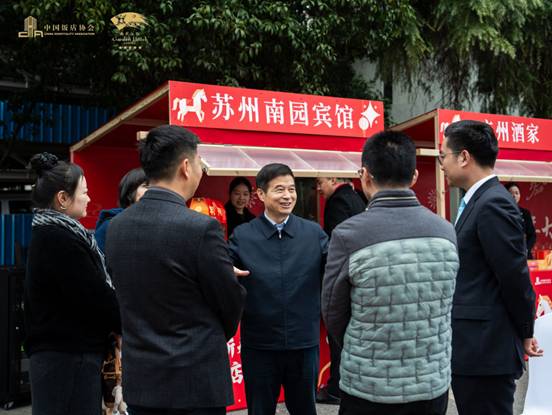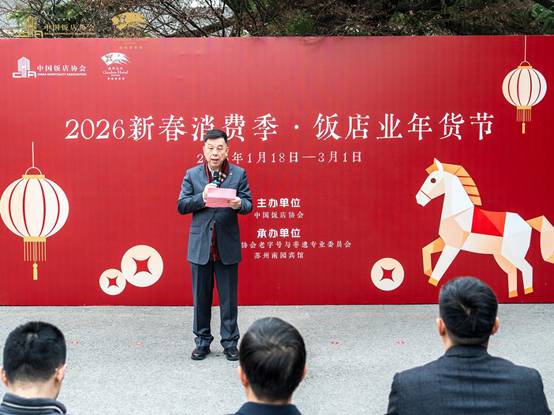 江南冬日,别有一番温润景象,而新春消费市场的“暖意”与老字号焕新的“热火”,已在这座古城中蓬勃涌动。1月18日,“2026新春消费季•饭店业年货节”在苏州南园宾馆正式拉开帷幕。活动由中国饭店协会主办,中国饭店协会老字号与非遗专业委员会、苏州南园宾馆承办。中国饭店协会会长陈新华,苏州市文化广电和旅游局党组成员、副局长花友祥,苏州市商务局消费促进和市场运行处田暮雨处长,苏州市非遗办副主任张岚,苏州市旅游饭店业协会会长孙子元,苏州市餐饮业商会会长单正,南京古南都集团总经理助理李明义,以及来自全国各地的老字号企业代表齐聚,共同探寻传统风味与现代消费的融合之道,为即将到来的新春市场点燃第一把火。