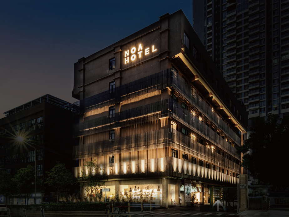 深圳诺岸酒店坐落于深圳“中华第一仓”——笋岗片区,由一座旧电焊厂厂房改造而成,是对深圳工业遗存与城市更新语境的当代表达。