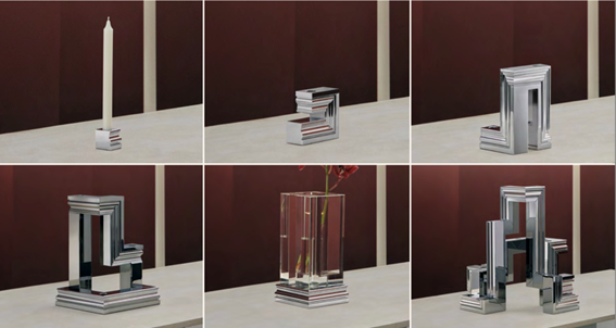 他将墙面饰线幻化为烛台与花瓶,打破线条的桎梏,将其冲破、重组、延伸。为Christofle大胆畅想出超现代的烛台与花瓶,既扎根于经典设计,又以前卫之姿跃入当代视野。