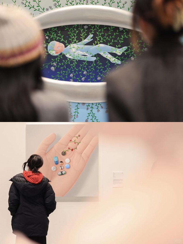 此外,2025年12月21日至2026年3月15日期间,泰国艺术家贡坎的全新个展《贡坎:当我苏醒于睡梦之中》在石区L2层The Pool by X Museum呈现。展览延续艺术家标志性的视觉语言,以温暖而明亮的色彩、柔和线条与静止人物姿态,构建出介于现实与超现实之间的心理场域。在本次展览中,艺术家特别委任创作“平行世界”装置作品,通过捕捉介于意识与潜意识之间的瞬间,呈现当代青年在自我认知与情绪流动中的反复与思考。光与影的交叠、梦境与清醒的错位、内在与外部的交换流动,使作品呈现出一种开放又内敛的叙事方式,为冬日里的前滩太古里注入一份安静而深刻的情感表达。