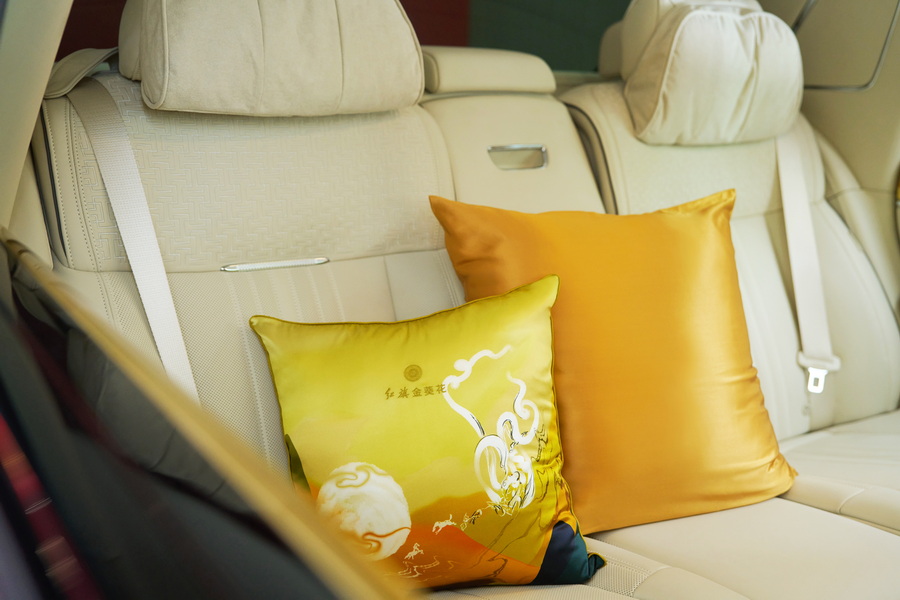 红旗金葵花国礼传承国车深厚底蕴,集顶级设计、技术、匠艺、文化于一身,使座驾呈现大国风范与东方之美交融共生的恢弘气度。丝侬SILKISS×红旗金葵花国礼限定合作,推出全新真丝车载套装,华夏文明的磅礴和灵动凝练于方寸之间,动与静之间自然平衡。车载套装包含抱枕和眼罩,6A级桑蚕丝匠心织就,鎏金色系尽显中式静奢。