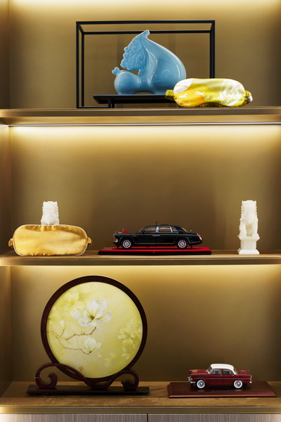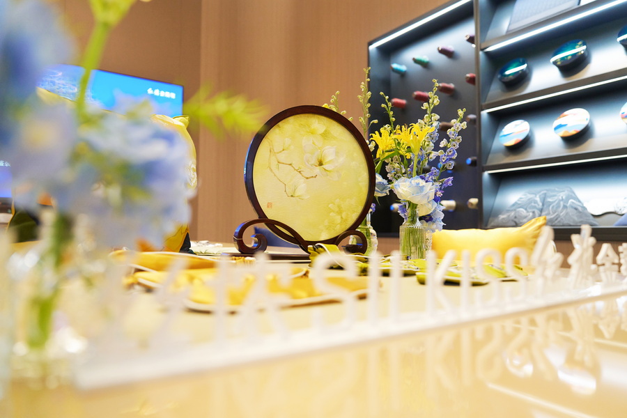 上海红旗金葵花尊享空间之中,金葵花国礼顶级座驾、丝侬SILKISS奢美真丝织物、非遗苏绣艺术作品跨界相融,此刻尽显东方锦绣。《盛颜》苏绣艺术作品,著名苏绣艺术家、国家级非遗项目 ( 苏绣 ) 代表性传承人姚建萍老师经典之作!丝线匠心轻捻,玉兰花在光影下璀璨流光,玉雪霓裳般馥郁流芳,风华千年。