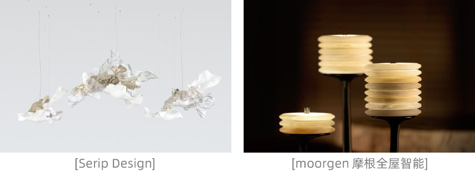 光环境的打造,是家庭氛围感的来源。意大利品牌Artemide以标志性设计与技术创新,让光从基础功能升维为沉浸式空间体验;Waldmann沃达迈在百年德系工艺中实现光对健康与身心的深度关怀;L&S乐思用工程逻辑与精密制造满足办公与商业空间的多元照明需求;Serip Design将自然意象融入金属工艺,打造极具雕塑感的灯具作品;HESHE携Rosie Li、Blue Green Works和Lake and Wells等多元品牌作品亮相,呈现多重照明语言。从匠心工艺到智能互联,紧扣系统化智控趋势,moorgen摩根全屋智能重塑未来空间的交互逻辑与场景感知;LKOO以光作为情绪媒介,特邀摩克设计合伙人、主设计师袁宗磊打造艺术化展位设计,呈现未来光环境的丰富层次;MURORA沐光AI智能健康照明让光线成为滋养身心的科技载体;Leedarson立达信深耕东方光影美学,探索光在健康、文化与空间中的多重价值,本土品牌正以多维视角,合力呈现蓬勃生长的中国原创力量。