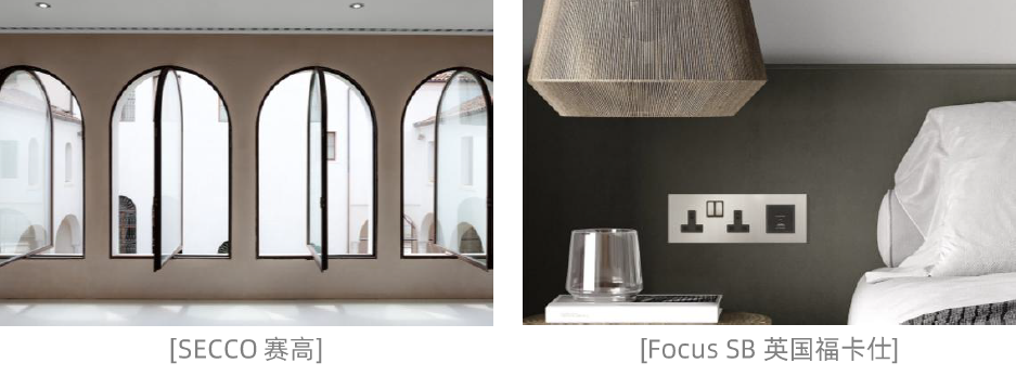 在地面与空间表面系统领域,各品牌同样各有巧思,兼顾实用与美学:瑞典Bolon以高性能编织地材与丰富的肌理表现力,将耐用性与设计感结合,适配办公与公共空间等高频使用场景;日本Kokuyo国誉依托深厚的办公与空间系统设计经验,打造兼具效率与人文关怀的空间组织方案;Focus SB英国福卡仕则以高端电气系统与极简控制界面,让开关面板成为空间秩序感的精致细节。