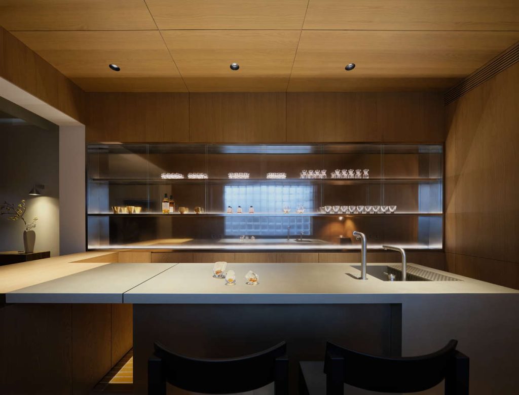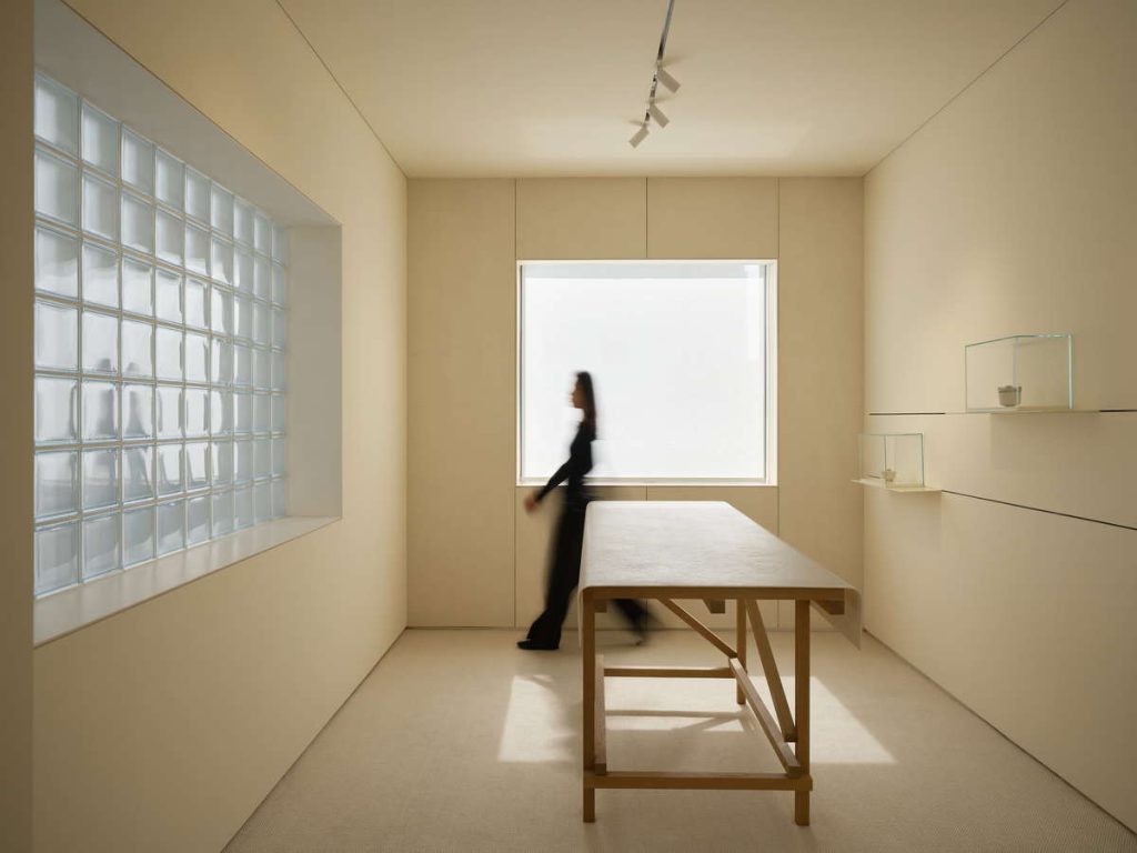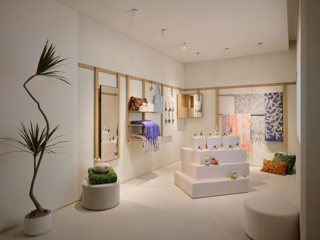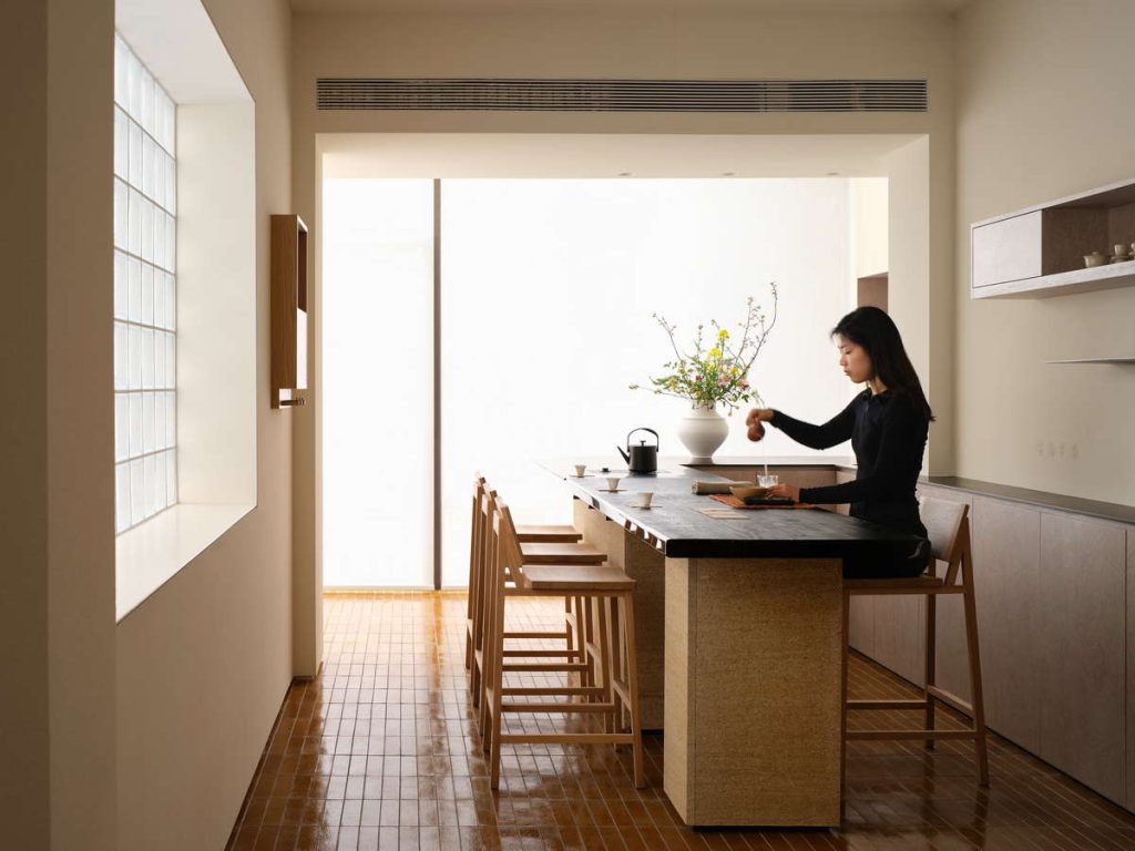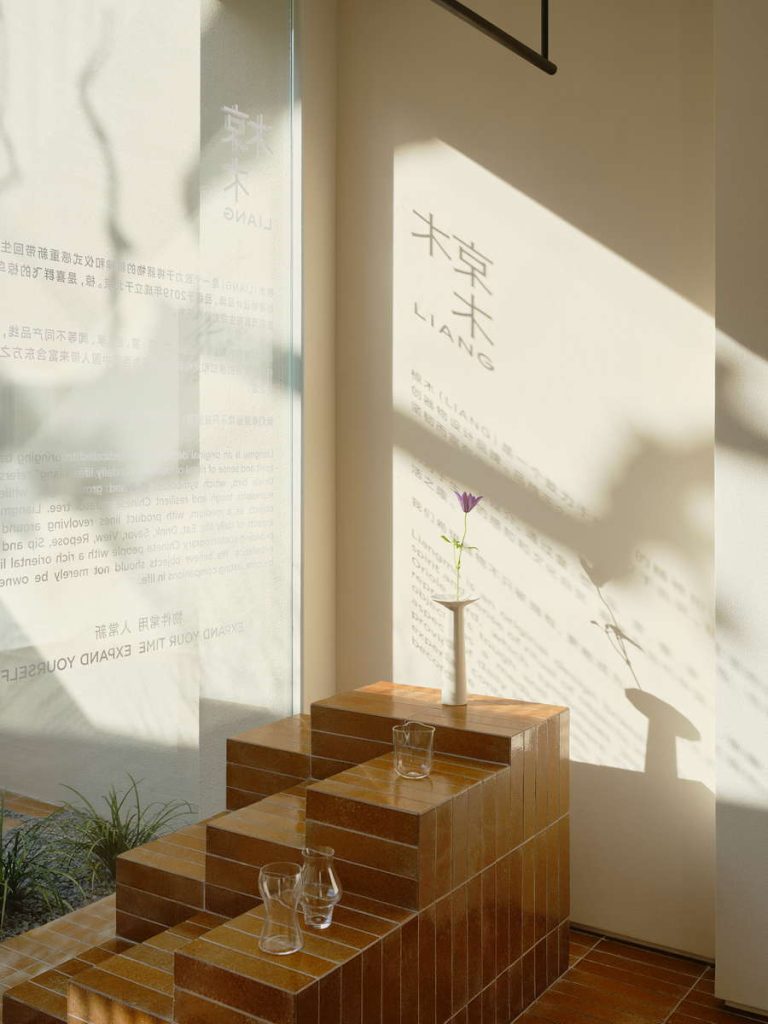 椋木始终注重光影与器物的互动,光成为贯穿空间设计的核心语言。整个空间充满丰富的材质细节:景德镇的再生陶瓷砖、茶色热熔玻璃,竹席纹理混凝土挂板,以及温暖的白色羊绒地毯,这一切皆呼应着品牌对多元材质和工艺的探索。