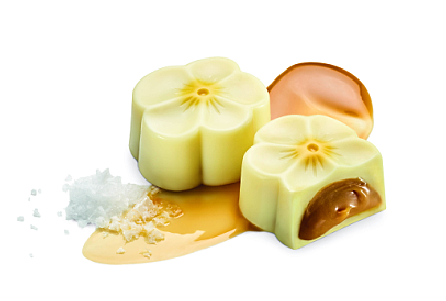 以初绽白樱为造型灵感,花瓣状白巧克力外壳内,盈满咸香焦糖慕斯,甜美与芳醇在舌尖曼妙绽放。视觉与味觉的双重盛宴下,让这点点樱花化作齿间最动人的风味。