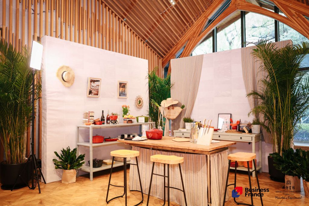 本次展览由Noosh Studio联合创始人及创意总监Stéphanie SALLETTE女士倾力打造,以“相聚的艺术”(The Art of Gathering)为策展主线,将法国文化如何将食材、器物与匠心转化为有温度的共享体验作为核心叙事。不同于传统品牌陈列,展览打造了一个法式待客之道的鲜活生态——食材、烹饪、餐瓷、美酒与欢庆场景在同一动线中自然交融。观众穿行于五幕递进式叙事空间,从食材甄选、厨房创作、餐桌分享直至庆典时刻,完整感受“从厨房到庆典”的沉浸转换。每一家参展品牌都成为这段旅程中的一个章节,共同诠释法式生活艺术的多元与优雅。