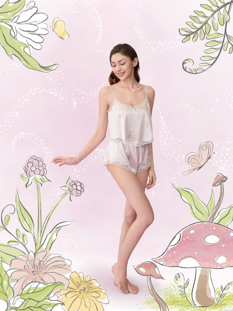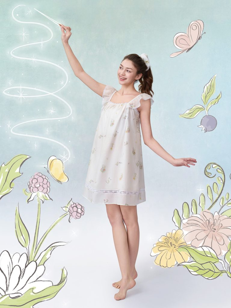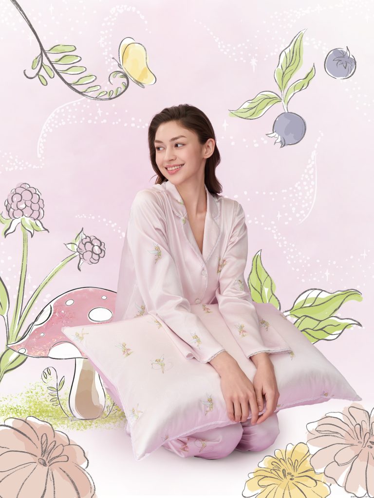 将花丛中轻盈飞舞的奇妙仙子 Tinker Bell 灵动织入纯白桑蚕丝肌理,全新合作系列如梦境跃入现实,推出 Beautiful Journey 系列睡衣与配饰单品,共同演绎“我的奇妙仙子之梦”,让仙尘洒落每一个安睡时分。