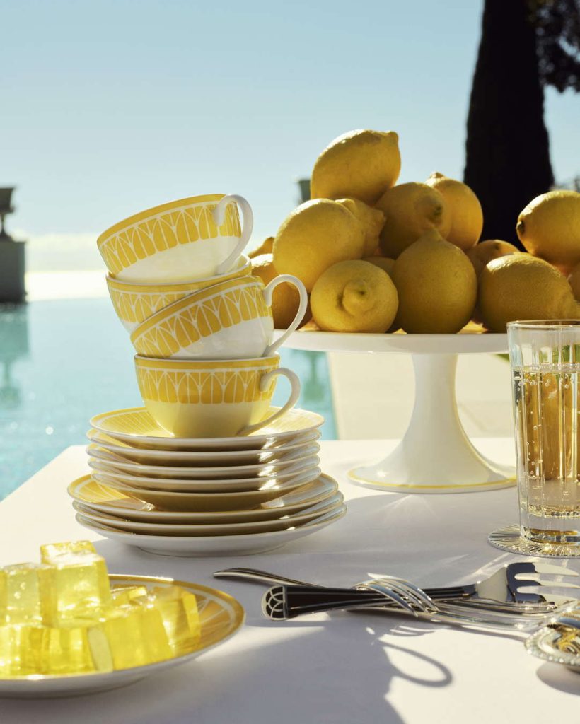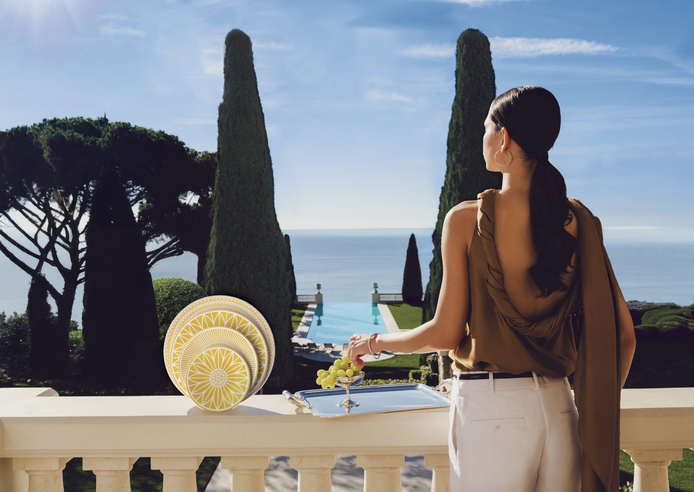 Malmaison Riviera 马勒梅松海滨系列每件单品仿佛以精致如水彩般的明黄色调,捕捉了地中海的阳光,是那般鲜活而自然,温暖并照亮餐桌。