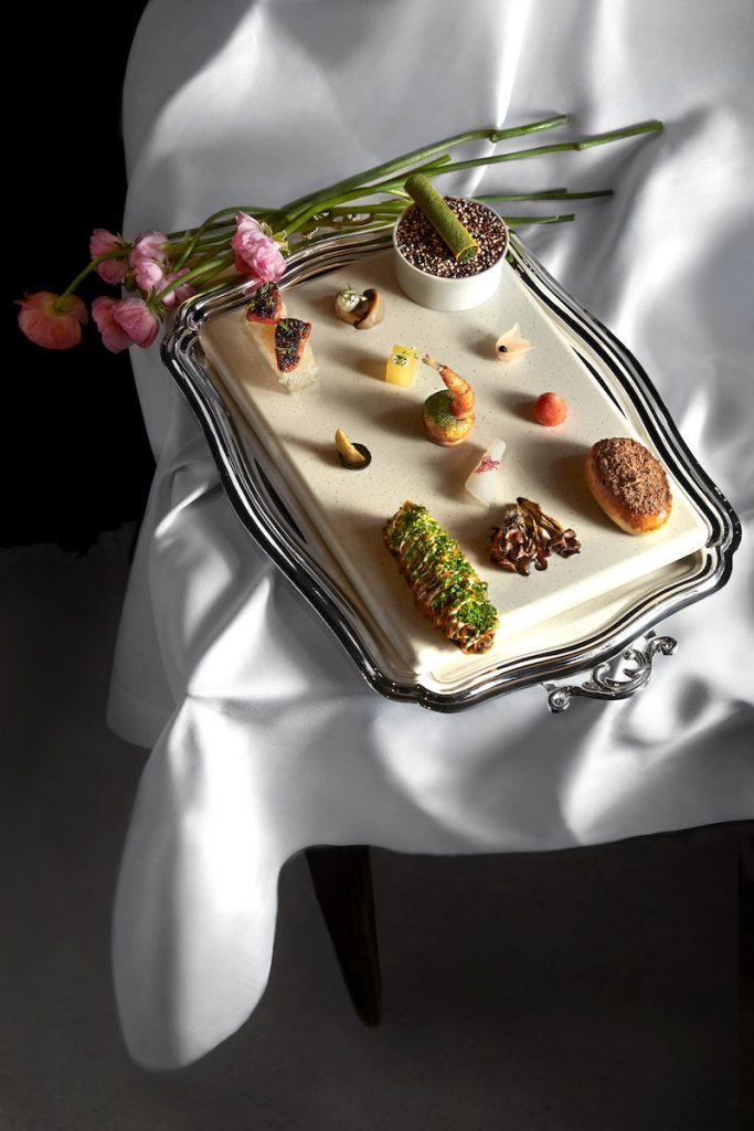 新加坡本地的饮食传统同样融入菜单之中——无论是 Hae Bae Hiam(南洋海米香辣酱)、Banquette de ‘Bak Kut The’(肉骨茶)、Crispy Rice-Crusted Chicken Wing(香酥米脆皮鸡翅)、My Best Chicken Rice(主厨甄选鸡肉饭)、Raffles Laksa Paella(莱佛士叻沙海鲜饭),还是 Lobster Heh Mee “Al Ajillo”(蒜香牛油龙虾面),皆以当代法式技艺重构新生。