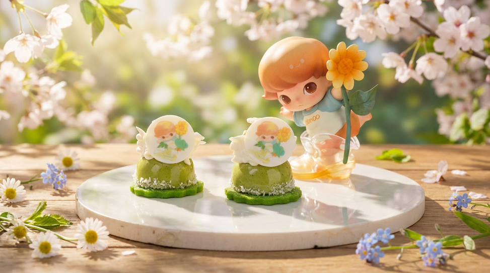 DIMOO 的春日奇遇亦延伸至维克多咖啡厅,为宾客带来一份轻松而精致的联名体验。此次合作特别推出两款限定饮品与两款定制蛋糕,以春日的色彩与风味为灵感,将 DIMOO 的治愈形象融入每一道出品之中。本次联名饮品及蛋糕同步推出:“DIMOO 青松小森林”与“DIMOO 莓莓小确幸”,售价均为人民币 90 元;定制蛋糕“被春天接住”售价为人民币 90 元,“春天的后座力”售价人民币 158 元。粉红气泡在杯中轻盈升腾,奶油花朵于盘中悄然绽放,每一口皆是对春天的温柔回应。此外,维克多咖啡厅窗外特设 DIMOO 春日窗贴打卡装置,成为宾客打卡留念、分享社交平台的绝佳场景,定格属于自己的春日奇遇瞬间。