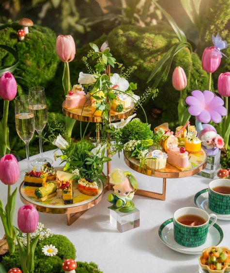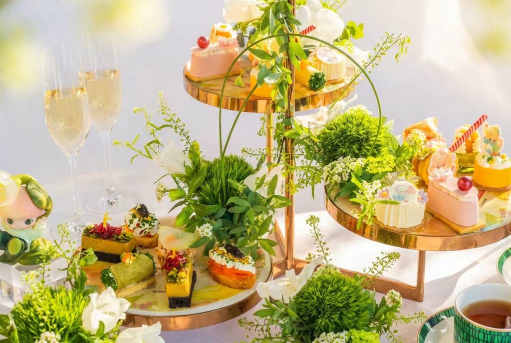 当法式优雅的茶歇时光,邂逅 DIMOO 的奇幻梦境,一场名为 “春日茶花会” 的味蕾奇遇在华懋阁悄然上演。以春日盛放的花香与清新绿意为核心灵感,上海和平饭店西厨行政主厨 Glen 倾注巧思,精心研发 10 款颜值与风味兼具的限定点心,将 DIMOO 的治愈软萌与春日的温柔鲜活融入每一口甜,让宾客在下午茶中感受舌尖上的春日浪漫。悦享联名下午茶,更可获得独家定制联名随行杯。