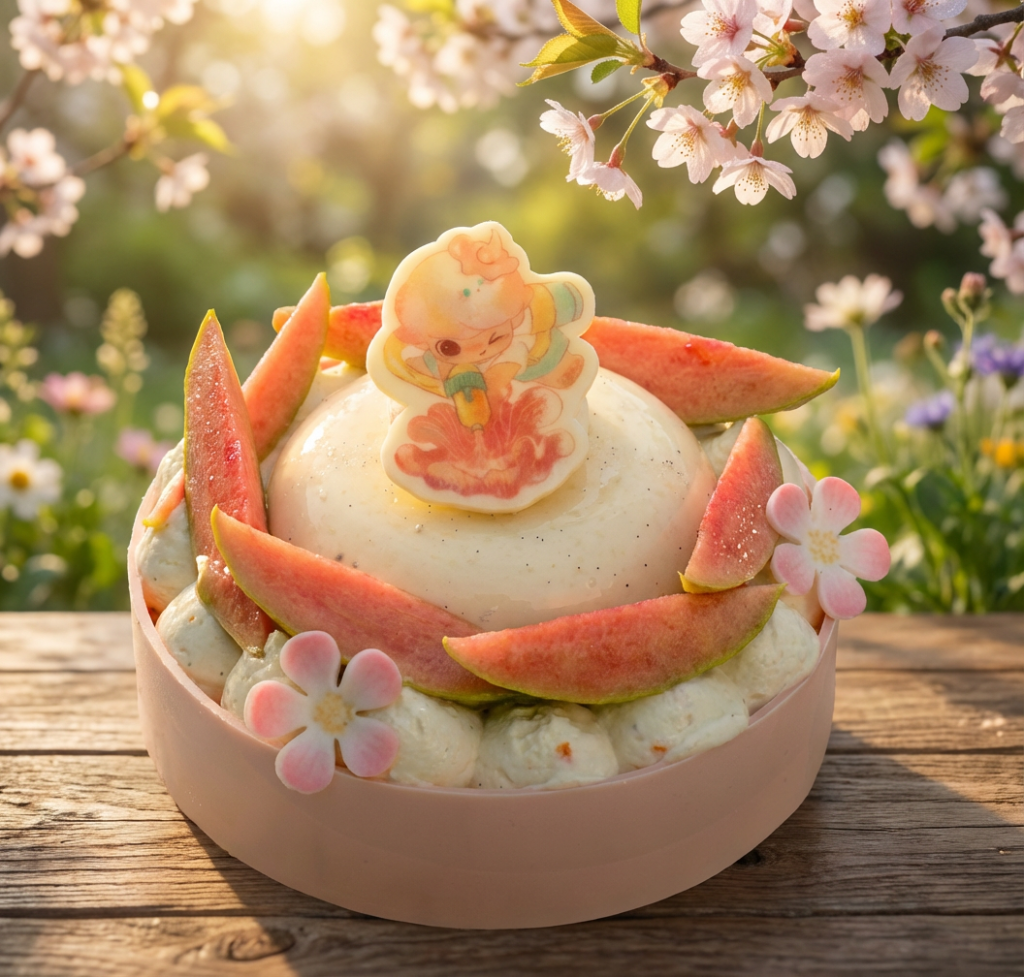 香草白巧的绵密丝滑裹挟着淡淡香草香,与葡萄柚啫喱的清爽轻盈交织,入口如春风拂过花田,留下一抹唇齿间的清甜。
