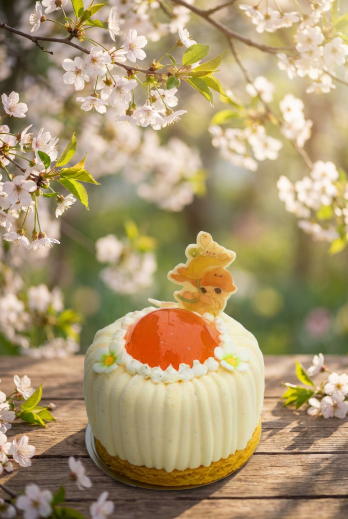 抹茶奶油带来春日初醒的清冽微苦,柑橘奶冻则以明亮的酸甜回应,两者交织,酸甜间绽放整个春天的明媚,如一场春雨后的呼吸,轻轻吹响了春天的序曲。