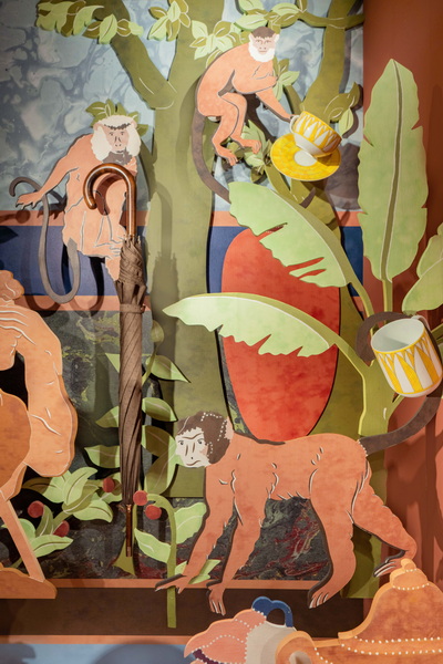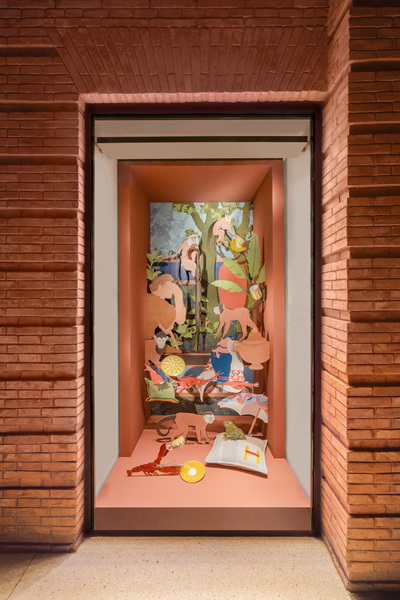 《灵栖之地》是一出简约绘画的重构之作。法国艺术家 Victor Cadene 通过绘画、剪裁、拼接其原画作中的人文、历史、自然内容,将绘画艺术带向更多维、物质化的表现形式。绘画技艺也呼应了2025年爱马仕“绘聚匠心”(Drawn to Craft)的年度主题,打开绘画与物质世界的对话通道。一座荟萃东西文化的秘境花园静卧在“ 灵栖之地 ”中央。东方园林的禅意之气,附着在古希腊、古罗马文明遗迹上,多元文化碎片似点点星光,顺着蜿蜒凉廊、露台的缝隙迸发;经与纬,同呼吸一方空气。