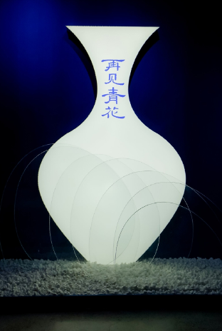 青花瓷的魅力,既在于独特的钴蓝色彩,更在于器型与纹样中蕴含的深厚文化内涵。《再见青花 海上丝绸之路沉浸式体验展》的第一展区“青花永境”,以沉浸式光影和艺术装置,带领观众深入探索青花瓷的纹样之美与器型之韵。